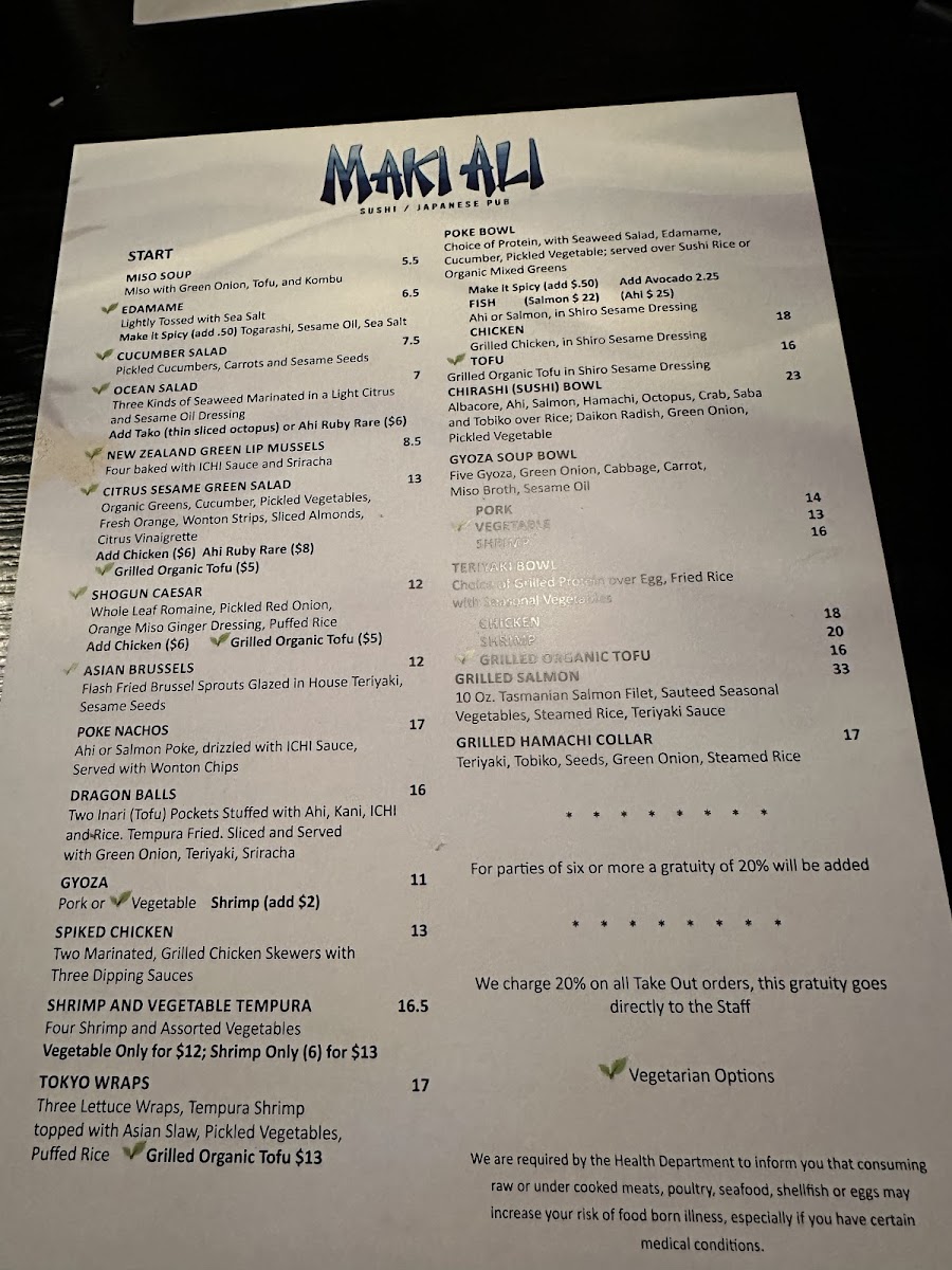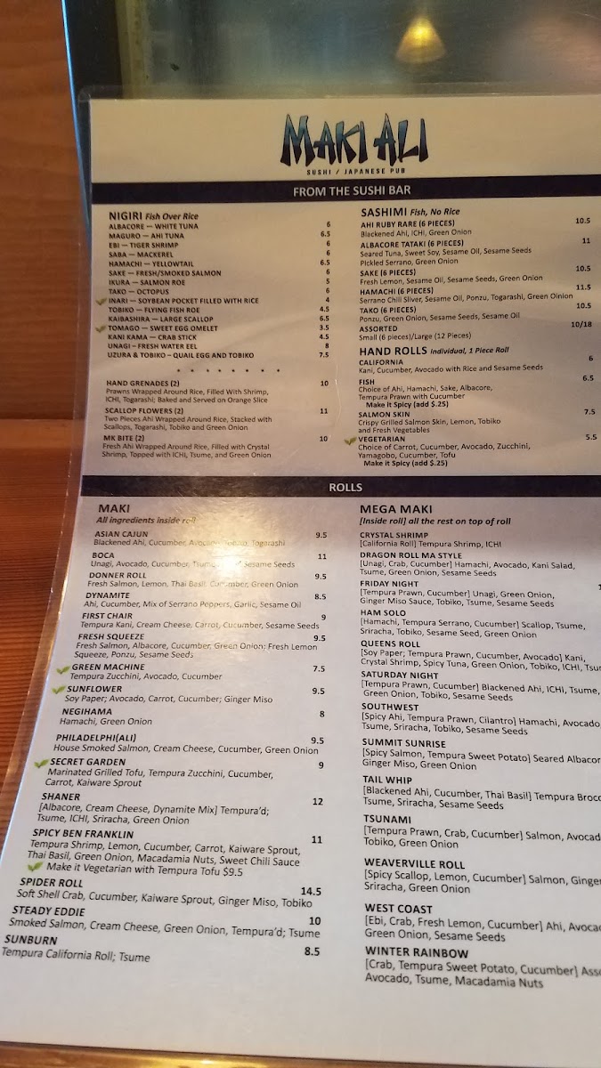 MakiAli is famed for its diverse array of sushi rolls, each crafted with fresh ingredients and culinary creativity. Popular options such as the Dragon Balls and Poke Nachos offer a perfect fusion of textures and flavors — think crunchy fried nachos adorned with fresh poke, a true delight for anyone looking to enliven their taste buds. The Asian Brussels and Gyoza promise robust flavors that showcase the kitchen's ability to create memorable dishes beyond sushi. Diners rave about the Chirashi Bowl too, a wonderful medley for those who appreciate the artistry of sushi preparation.